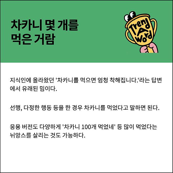 차카니 100개 먹은 트워드 덕분에 오늘도 트렌드 충전!