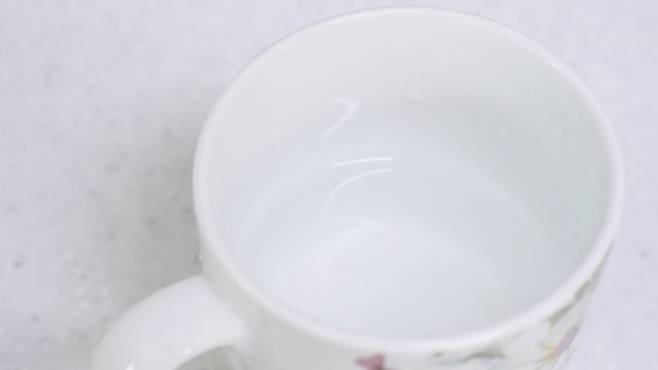 먼저 주둥이가 큰 머그컵을 준비하세요. 그리고 물을 1/3컵 정도 받으세요. 이제 전자레인지 800W 기준으로 미리 1분 정도 데우세요.
