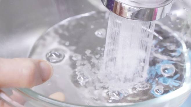 전자레인지 용기를 준비하세요. 그리고 물을 조금 받으세요.