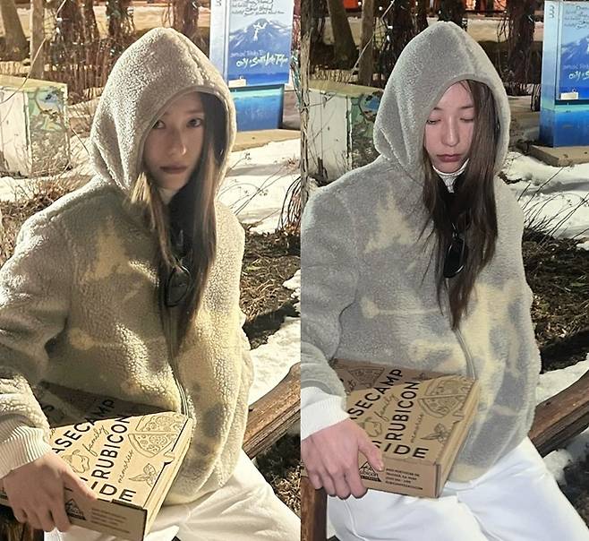공개한 사진에서 정수정은 화이트 팬츠에 후드 뽀글이 집업 재킷 산책룩으로 힙하면서도 청순한 동안 미모를 드러냈다.
