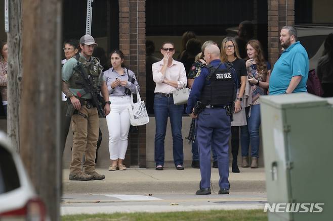 [디어본=AP/뉴시스] 6일(현지시간) 미 미시간주 디어본의 햄프턴인 호텔에서 총격이 발생해 경찰이 사람들을 대피시키고 있다. 경찰은 이곳 직원과의 돈 문제로 발생한 이번 총격으로 1명이 다쳤으며 총격 용의자는 몇 시간 동안의 대치 끝에 투항했다고 밝혔다. 2022.10.07.