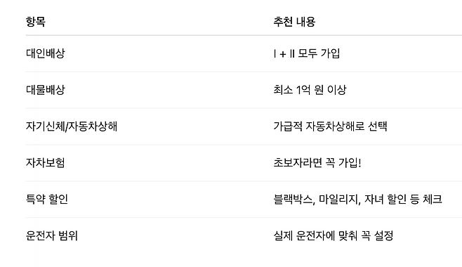 1. 대물 배상 한도 너무 낮게 설정