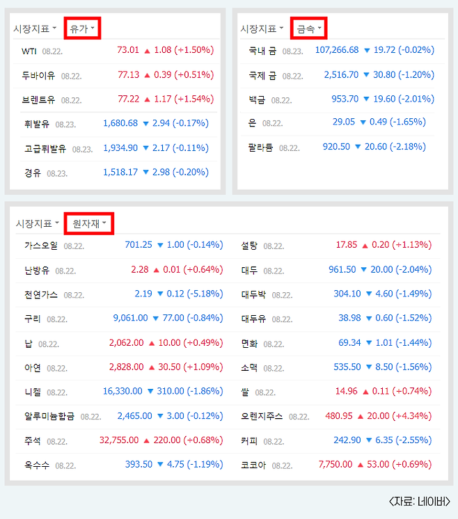 하지만 달러 가치 외에도 생산량과 수출량, 경기 변동, 지정학적 위험(전쟁) 등원자재 가격에 영향을 미치는 요인은 다양하므로 이 공식이 항상 일치하는 것만은 아닙니다.
