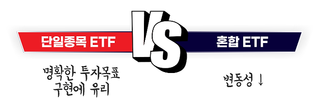단일 종목을 추종하는 ETF보다는 혼합 ETF가 변동성이 낮아질 수는 있지만, 명확한 투자 목표를 구현하고자 하는 투자라면 단일종목 ETF가 더 유리할 수 있습니다.