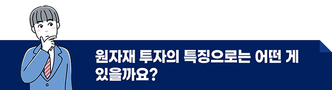 원자재는 주식이나 채권과는 보통 다른 움직임을 보이는 투자 자산, 즉 상관관계가 낮다고 할 수 있습니다. 하지만 경기 변동에 민감하게 반응하고, 가격 변동성이 크므로투자 전에 그 특징을 제대로 이해하는 것이 필요합니다.
