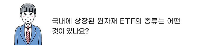 국내에 상장된 원자재 관련 ETF를 분류하자면, 선물형∙현물형, 단일종목형∙혼합형 등으로 나눌 수 있습니다.