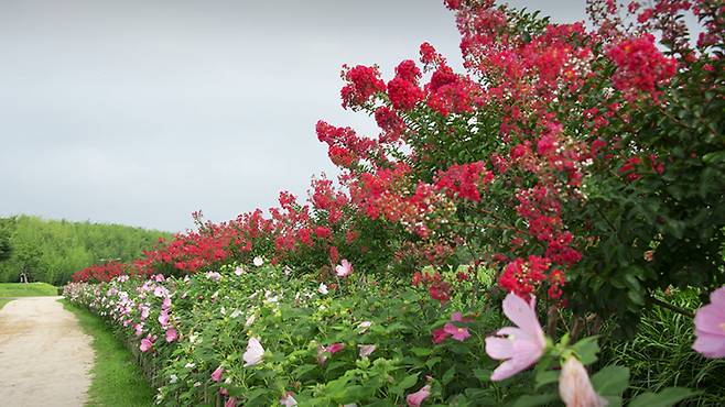 특히 배롱나무꽃은 긴 꽃잎이 바람에 흔들릴 때마다 한 폭의 수채화를 떠올리게 해, 산책하는 이들의 발걸음을 자연스럽게 멈추게 만듭니다.
