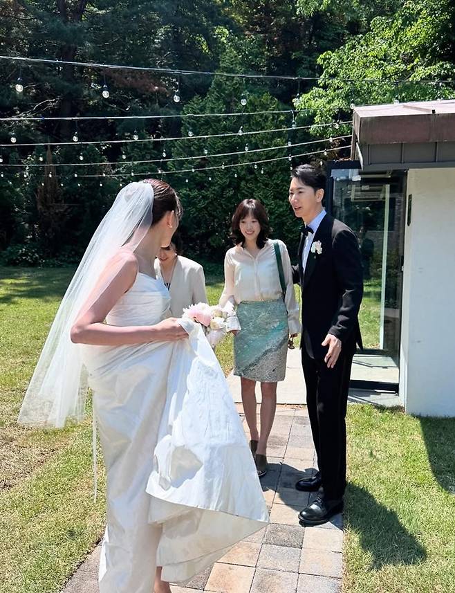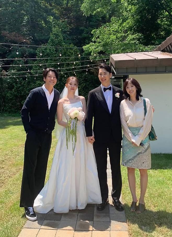 전혜진은 19일 자신의 채널에 “최장신 커플들 사이 나는 쪼꼬미. 결혼 축하해 이쁜 커플”이라는 글과 함께 결혼식 참석 사진을 게재했다.