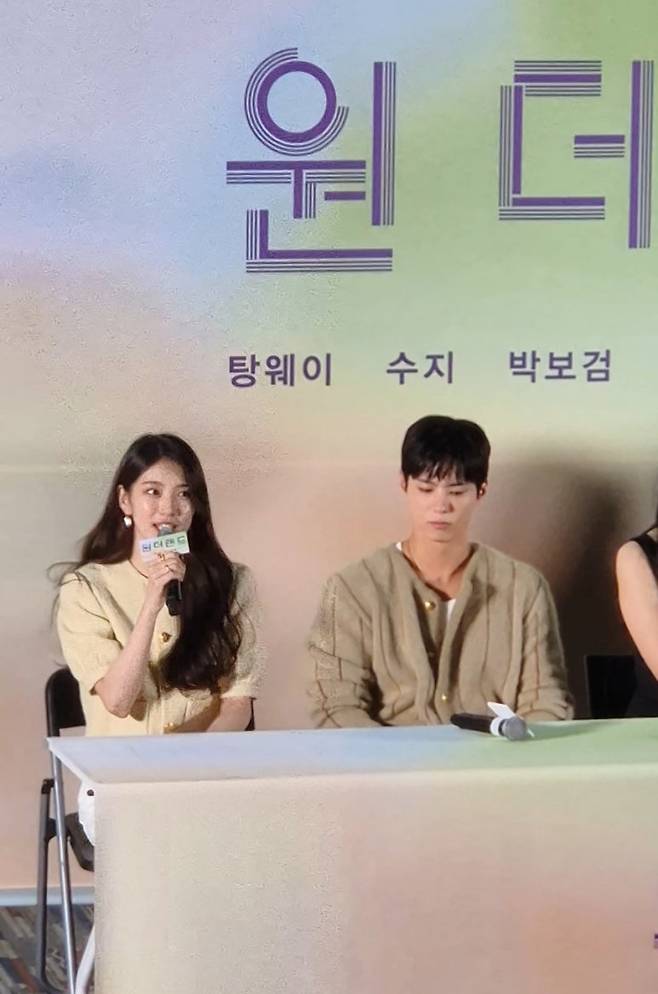 배수지와 박보검은 연인으로 등장해 애틋한 감정을 나눈다. 박보검은 “태주가 정인을 예뻐하는 극 중 보이지 않았던 모습, 아름다웠던 청춘의 시간을 사진 속에 담으며 서사를 메꾸어 나갔다”고 답했다. 이어 “며칠 전 수지가 직접 쓴 원더랜드 서비스 신청서를 SNS 올린 걸 봤는데 고마웠다”고 감사를 표했다.