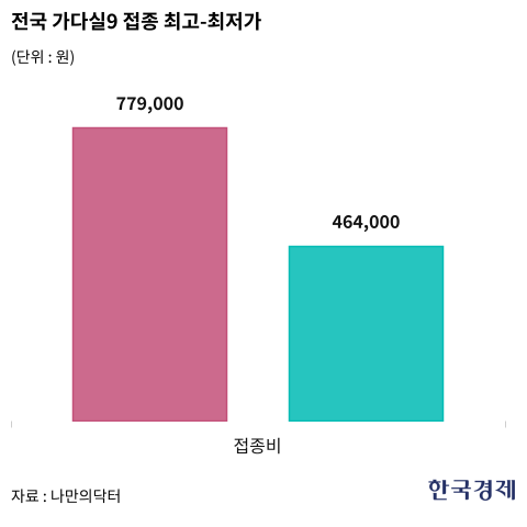 2일 비대면진료 플랫폼 '나만의닥터'에 등록된 접종비 데이터에 따르면 전국 의원급 의료기관의 '가다실9' 3회 접종비용은 최저가 46만4000원(인천)에서 최고가 77만9000원(충남)를 기록했다.