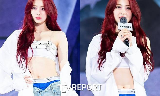 르세라핌 허윤진, 속옷 그대로 노출한 '충격' 패션...팬들 의견도 분분