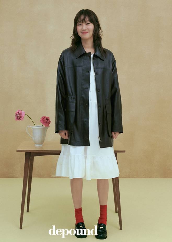 또 에코 레더 재킷과 화이트 미니 드레스 착장에 컬러 양말을 포인트로 활용해 미니멀하면서도 센스있는 스타일링을 완벽하게 소화했다.