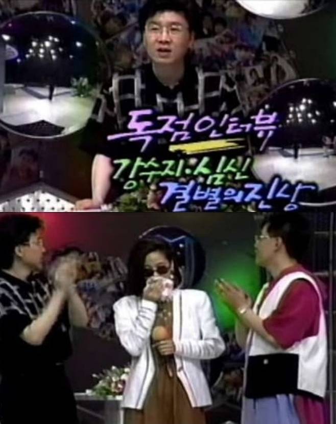 강수지는 1993년 방송된 '특종! 티비 연예'에서 직접 결별을 인정하며 "좋은 친구로 남기로 했다"고 밝혔는데요. 선글라스로 가렸지만, 눈물을 보였습니다.