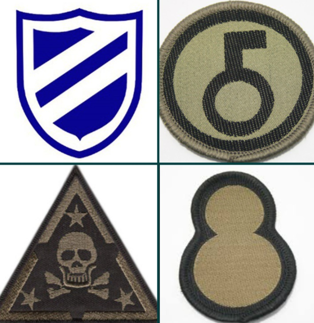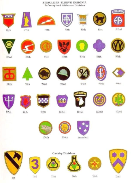어깨 슬리브 휘장은 제1차 세계 대전이 한창이던 1918년, '살쾡이'라 불리었던 미국의 81보병 사단이 처음으로 사용했던 것으로 알려져 있습니다. 참고로 81보병 사단이 처음 SSI를 부착한 후 프랑스에 배치되었을 당시, 이들은 다른 미국 원정군의 부대들로부터 엄청난 멸시를 받았다고 합니다.