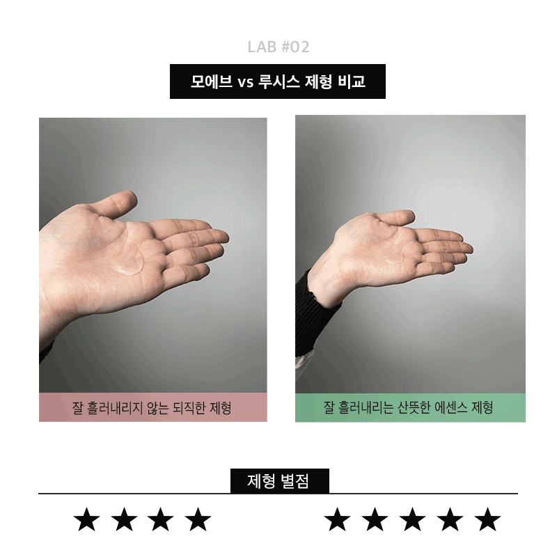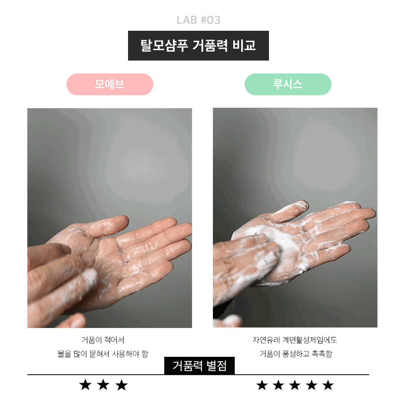 모에브 탈모샴푸는 묵직한 느낌의 제형으로 잘 흘러내리지 않아서 영양감이 느껴지는 편이었고 루시스 탈모샴푸는 에센스 제형으로 수분감이 많이 느껴졌어.