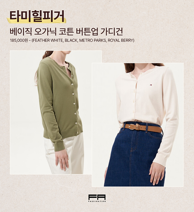 #타미힐피거 베이직 오가닉 코튼 버튼업 가디건