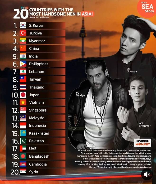 아시아에서 남자가 잘생긴 나라 TOP20