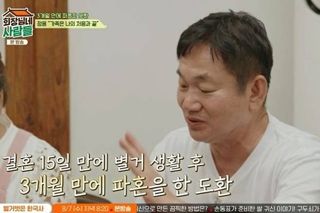 이에 배도환은 "제가 결혼하고 나서… 3일 만에 헤어졌거든. 3일 만에 각방 쓰고 15일 만에 걔가 나가고 3개월 만에 정리를 했는데 파혼을 한 거야. 이혼이 아니라"라고 설명했습니다.