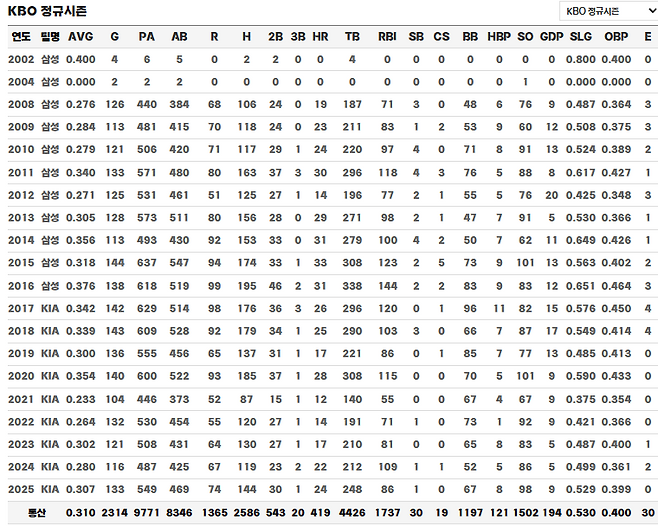 #최형우의 프로 통산 기록