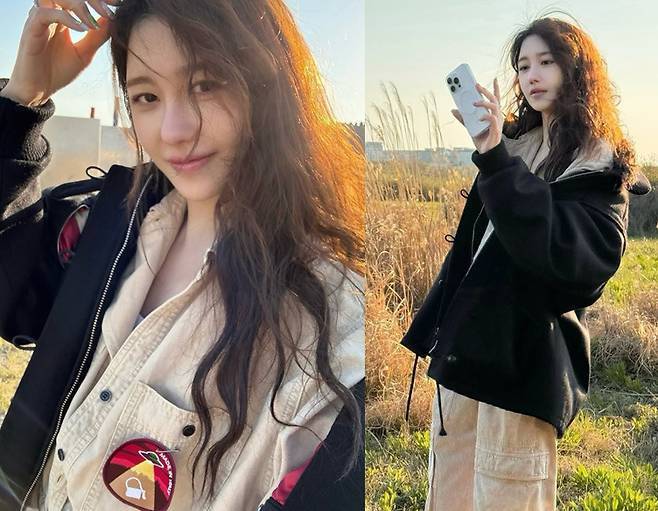 굵게 웨이브진 긴 머리가 바람에 흩날리며 자유로운 무드를 자아냈고, 은은한 미소와 함께 빛나는 민낯 비주얼이 보는 이들을 설레게 했습니다.