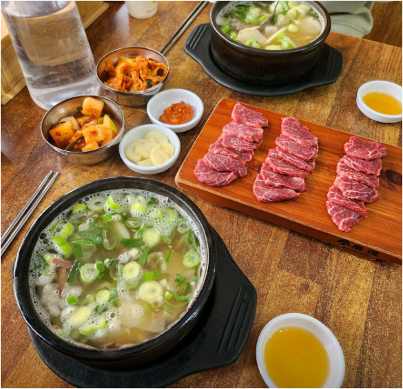 이곳은 24시간 운영돼서 언제 가도 국밥을 먹을 수 있다는 점이 최고예요. 국물도 진하고 고기도 실하고, 심지어 가격도 착해요. 한우육사시미도 별미지만, 따뜻한 국밥 한 그릇이면 속이 든든해지는 곳이에요.