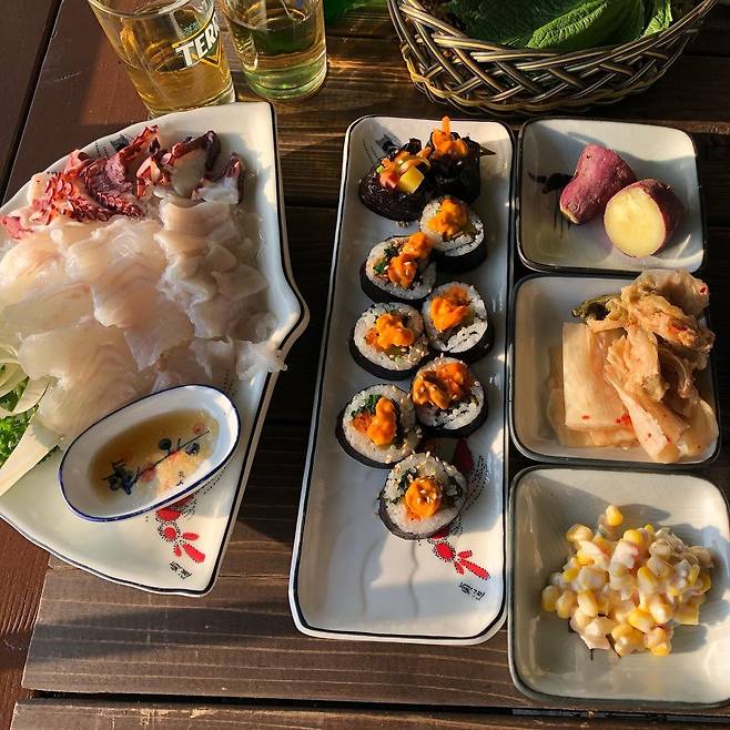 바다를 보며 먹는 성게알 김밥 부산 영도 '옥천회집'