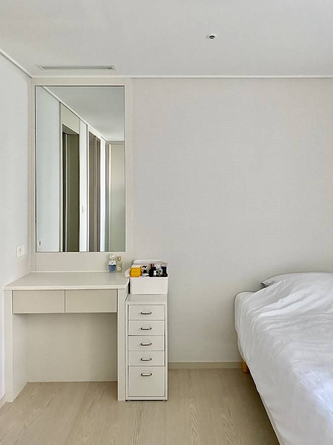 우리 집은 세 식구가 각자의 방을 사용중인데요. 제가 사용하는 안방에 화장대가 있는 것을 제외하고는 모두 싱글침대와 옷 행거, 잡동사니용 서랍이 다인데요.