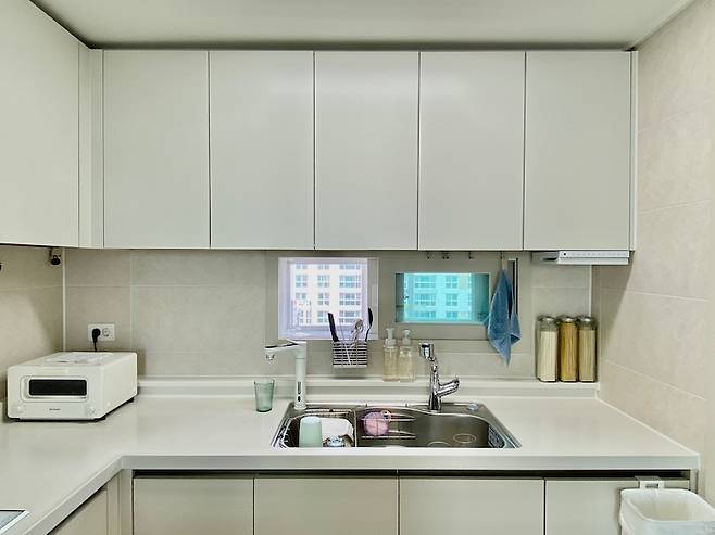 싱크대 전체샷입니다. 평형에 맞는 아주 소박한 사이즈이지요^^
