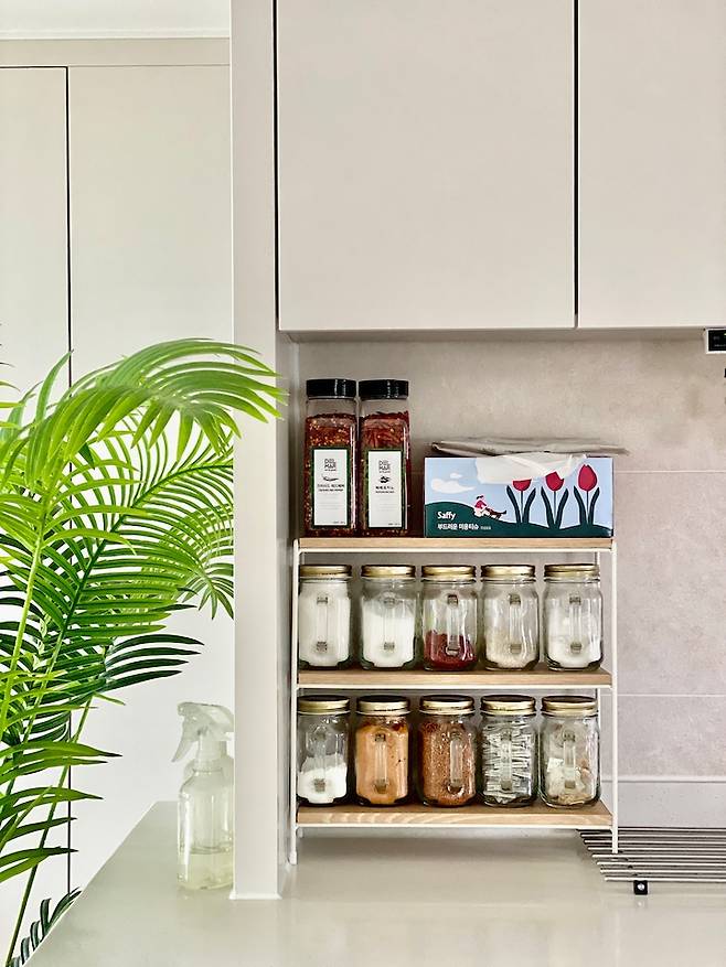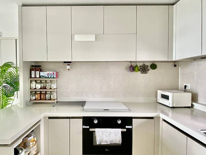 최대한 쓸데없는 물건은 올려두지 않으려고 했고 자주 사용하는 양념들은 가까운데 두었지요. 요리를 즐기지는 않지만 최근 배달 음식이 지겹기도 하고 비용도 부담돼서 자주 요리를 하는 편인데요. 인터넷 레시피만 잘 활용하면 어느 맛집 못지않아 이제서야 요리에 재미를 붙이고 있네요.