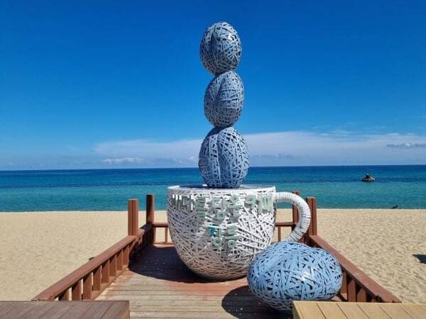 포토존마다 바다와 어우러진 독특한 분위기를 연출할 수 있어, 연인·친구·가족과 함께 특별한 사진을 남기기에 제격입니다. 해질녘 붉은 노을을 배경으로 사진을 찍으면 더욱 감성적인 분위기를 담을 수 있지요. 인근 솔밭길에는 책과 독서대가 설치된 쉼터도 있어, 바다를 바라보며 조용히 책을 읽는 이색적인 경험도 할 수 있습니다.