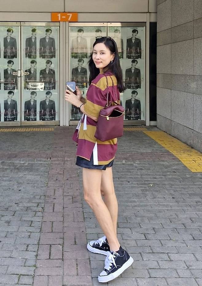 공개한 사진에서 고소영은 허리를 멋스럽게 질끈 묶은 스트링 스트라이프 티셔츠에 늘씬한 각선미가 드러난 쇼츠를 매치한 간편한 콘서트 나들이 스타일을 완성했다.