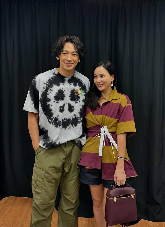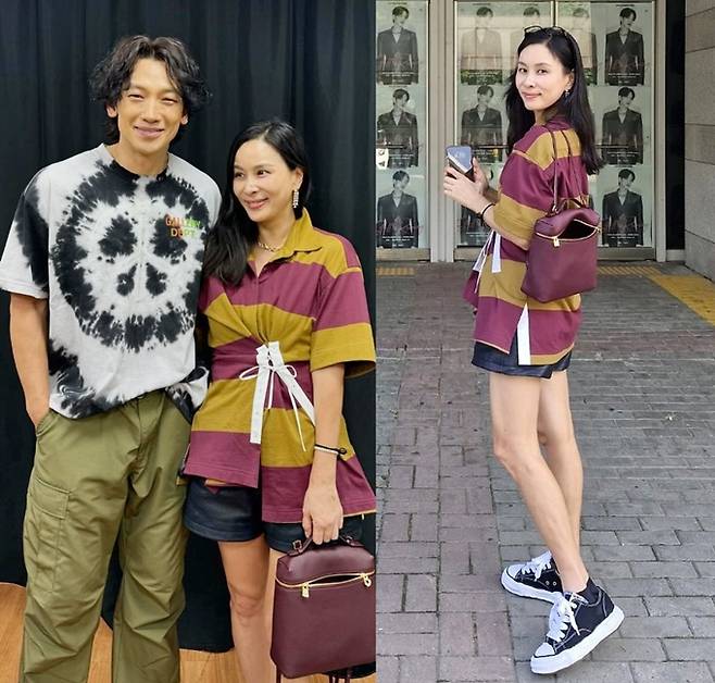 배우 고소영이 스트링 스트라이프 티셔츠 나들이룩으로 다정하게 비 콘서트를 응원했다.