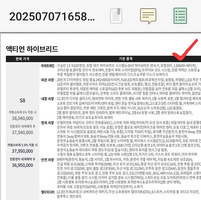 KGM도 그렇고 르노도 그렇고 하이브리드는 가격표에 배터리 용량을 명시해놓습니다