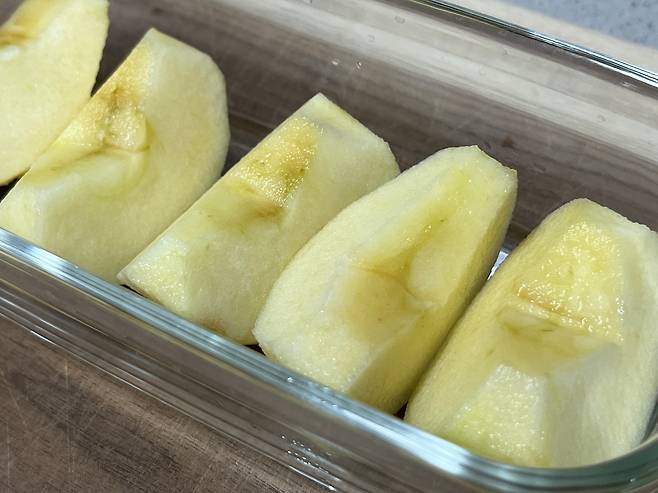 먹다 남은 사과는 그냥 랩에 싸서 보관하는 경우도 많은데요. 하지만 이 방법은 좋은 보관 방법이 아닙니다. 사과 표면에 남은 수분과 공기 중의 미생물이 밀폐된 랩 안에서 빠르게 번식하기 때문입니다.