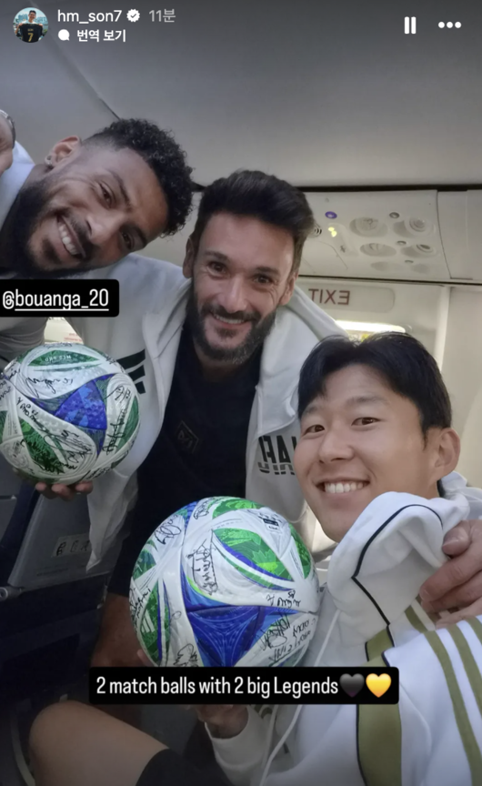 손흥민은 18일(이하 한국시간) 개인 SNS에 “두 개의 공, 두 명의 위대한 레전드와 함께”라는 멘트를 달았다. 사진 속 주인공은 손흥민 본인과 단짝 공격 파트너 드니 부앙가, 그리고 노장 수문장 위고 요리스였다.