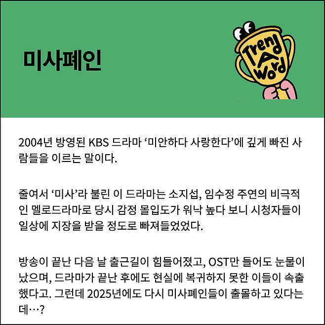 시청자들이 현실에 복귀하지 못하고 생긴 말이 있었으니 바로 미사폐인.