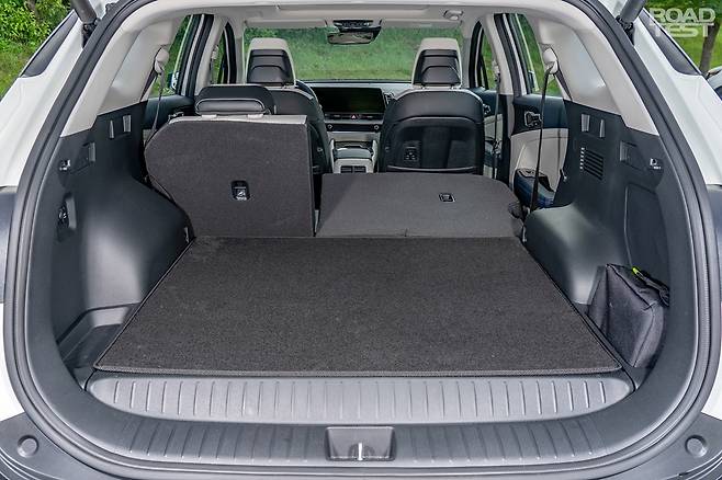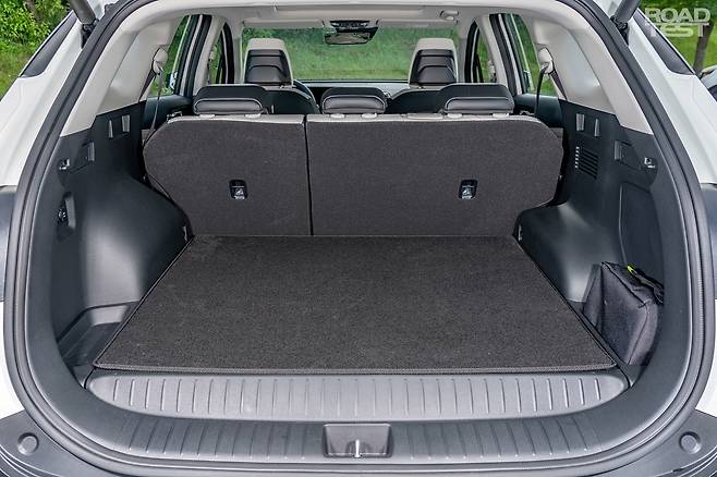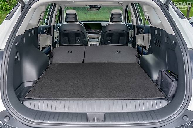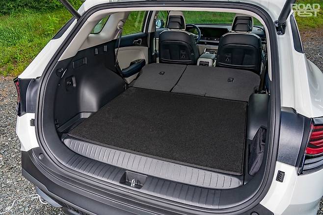 이처럼 LPG 탱크가 스페어타이어 자리에 숨으니, 과거 LPG 차와 비교해 적재공간이 무척 넉넉하다. 트렁크 바닥 높이가 조금 올라가긴 했지만, 커다란 5세대 스포티지의 골격이 이를 충분히 상쇄한다. 오히려 장점도 있는데, 조금 높은 트렁크 바닥 높이 덕분에 2열을 접으면 거의 180° ‘풀 플랫’이 가능하다. 배터리 때문에 완벽한 평탄화가 불가능한 하이브리드와 비교하면, 요즘 유행하는 ‘차박’에 좀 더 유리하다.