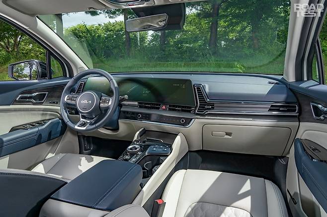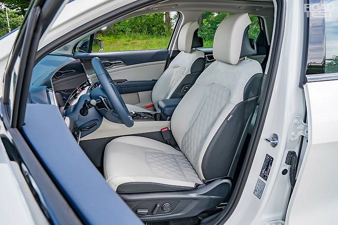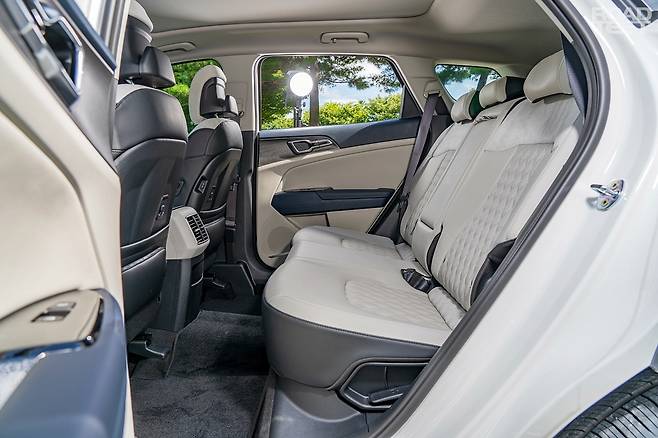 실내도 동일하다. 12.3인치 모니터 두 개를 붙인 커브드 디스플레이를 중심으로 간결하게 구성했다. 도어 소재, 시트 품질, 수납공간 등 모든 게 가솔린 모델과 같다. 이번 5세대 스포티지의 핵심은 넉넉한 뒷좌석에 있다. 휠베이스를 2,755㎜까지 이전보다 85㎜ 늘리면서 쾌적한 2열 공간을 갖췄다. 부부와 자녀 1~2명으로 구성된 4인 가족의 패밀리카로 충분한 체격을 지녔다.