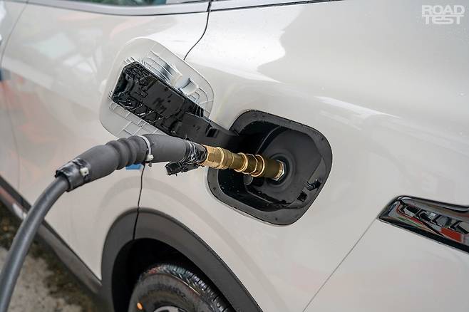 우선 비용 소개에 앞서, 스포티지 LPG의 겉모습을 가볍게 살폈다. 사진처럼 LPG 모델의 디자인은 일반 가솔린 스포티지 외모와 똑같다. 시승차는 그래비티 트림으로, 범퍼 스타일이 조금 다르고 19인치 휠을 네 발에 끼웠다. 뒷모습도 마찬가지. 과거처럼 트렁크 패널에 ‘LPG’ ‘LPI’ 같은 배지가 없어 한층 깔끔하다.