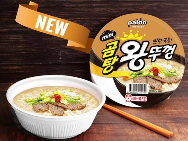 팔도에서 출시한 왕뚜껑 시리즈의 신작 ‘미니 곰탕 왕뚜껑’은 온라인 판매점에서만 만날 수 있는 제품이다. 이름 그대로 기존의 왕뚜껑 제품들보다는 적은 양의 컵라면으로, 개당 용량은 80g이며 열량은 370㎉다. 꼬들꼬들하면서도 얇은 왕뚜껑 특유의 면발이 특징이다. 곰탕을 베이스로 삼고 있어서, 후추의 진한 향과 알싸한 맛, 구수하고 진한 사골 국물을 만끽할 수 있다. 개당 판매가는 1,100원이다.