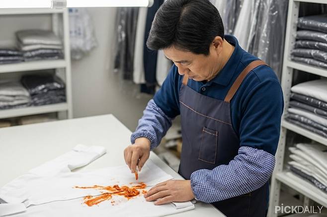 김치찌개를 먹다가 흰 옷에 국물이 튀었다. 당황해서 물티슈로 닦았지만 빨간 얼룩이 오히려 번져버렸다.