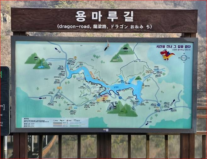 그래서 이 계절의 담양호는 ‘보기 좋은 호수’라기보다 ‘걷기 좋은 호수’ 에 가깝습니다. 용마루길은 바로 그 호수를 가장 가까운 거리에서 따라 걷는 길입니다. 왕복 약 9.5km, 중간 휴식 포함 3시간 20분 걸리기 때문에 빠르게 끝내는 코스라기보다, 일정한 속도로 오래 머무는 일정이 잘 맞습니다.