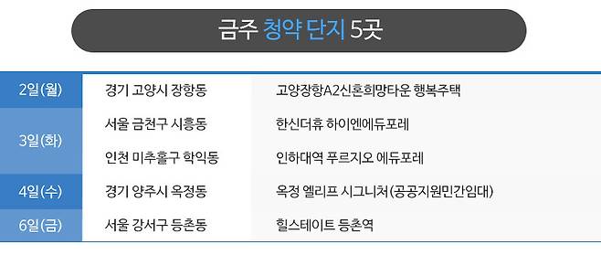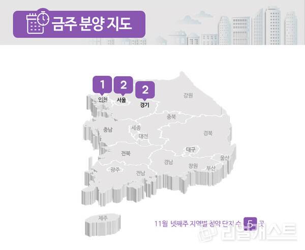 부동산인포에 따르면 12월 1주 전국에서 신규 청약 및 입주자를 모집하는 곳은 5곳, 총 3462가구로 집계됐습니다(총 가구수 기준).
