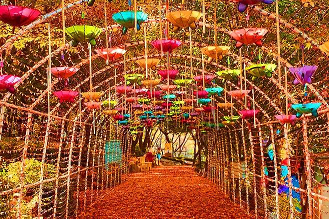 오후에는 각종 조형물이 포토존이 되어 인생샷 찍기 좋고, 가을 단풍과 어우러져 화려함을 뽐내지만 해가 지면 또 다른 매력을 선보입니다.