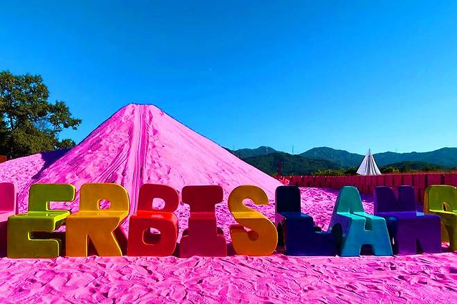 낮에는 핑크색 모래밭에서 인생샷을 남기고, 가을 단풍과 어우러진 예술 조형물 사이를 산책하며 이국적인 정취를 만끽할 수 있습니다.