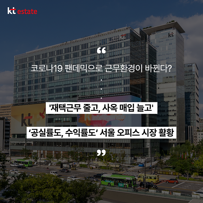 역대급 거래가 있었던 지난해 오피스 시장을 돌이켜보면 금리, 공급이라는 기본적인 투자 환경 이외에 '재택근무'보다 '대면 협업의 가치'에 큰 비중을 두는 국내 기업 문화를 다시 한번 인식하는 계기가 되었습니다.