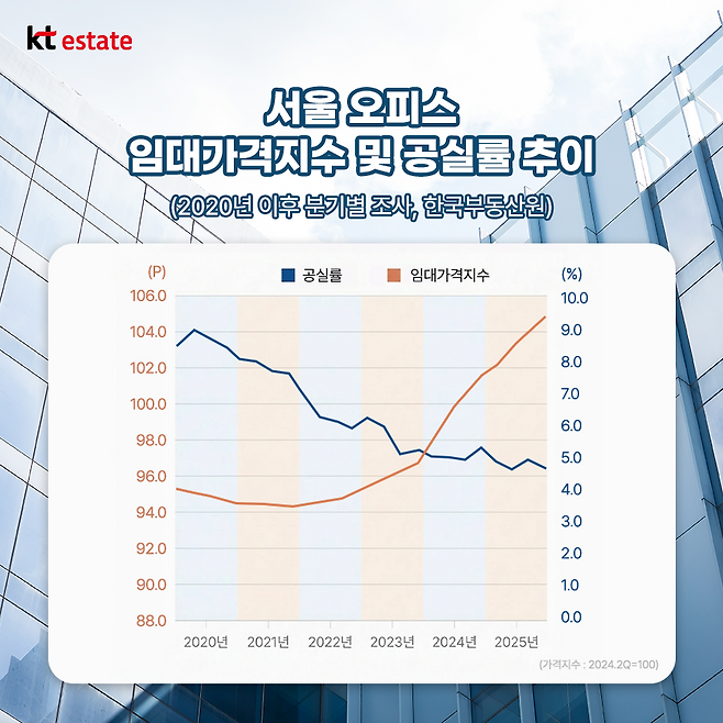 특히 오피스 수요가 집중된 서울만 놓고 보자면, 공실률이나 수익률 측면에서 의미 있는 숫자가 나오고 있습니다.