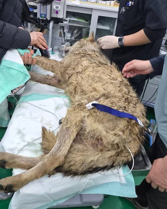 발견 당시 늑구는 수로에 빠져 움직임이 둔해진 상태였던 것으로 알려졌다.