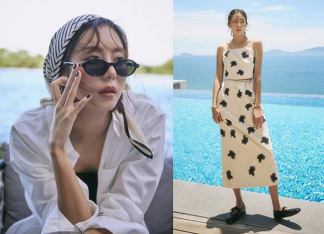 또한 스카프, 선글라스, 샌들 슬리퍼 등 다양한 패션 소품들을 착장마다 색다르게 소화한 유이는 휴양지에서의 여유와 낭만을 온몸으로 표현해내 현장 스태들의 감탄을 자아냈습니다.