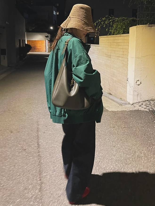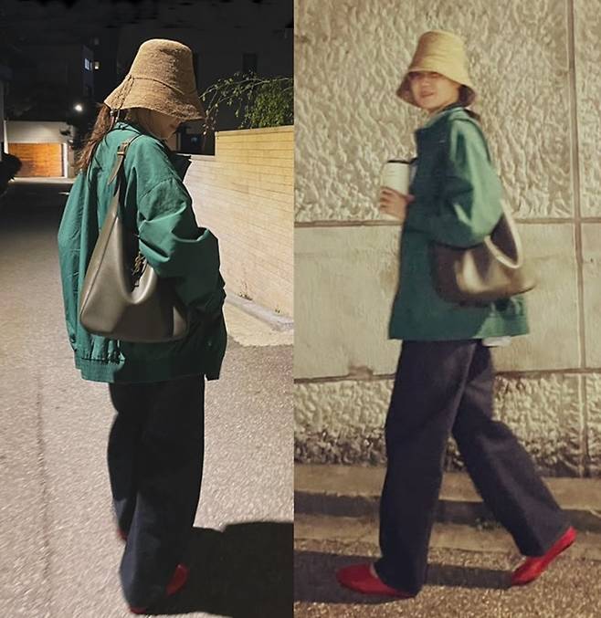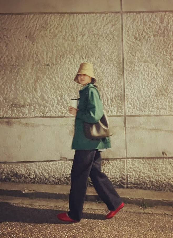 공개한 사진에서 공효진은 늦은 밤에 버킷햇을 눌러쓰고 카키 컬러의 오버핏 점퍼를 입고 커다란 핸드백을 매치한 산책룩으로 평범한 듯 비범한 아티스틱한 스타일을 연출했다.